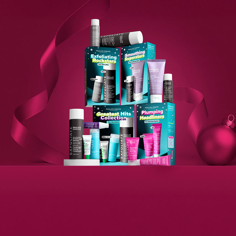 This year's curated selection of skincare Christmas gifts includes the Greatest Hits Collection, which includes a cleanser, iconic BHA exfoliating toner and two treatments. We also have the Exfoliating Rockstars gift set, which contains both AHA and BHA exfoliants. A third option is the Plumping Headliners present where you can gift both the Pro-Collagen Peptide Plumping Moisturizer and the Gloss Balm Lip Treatment, this also works well as an anti-ageing gift set. Another choice we offer is the Smoothing Superstars set where you can give bestselling BHA for both face and body.
